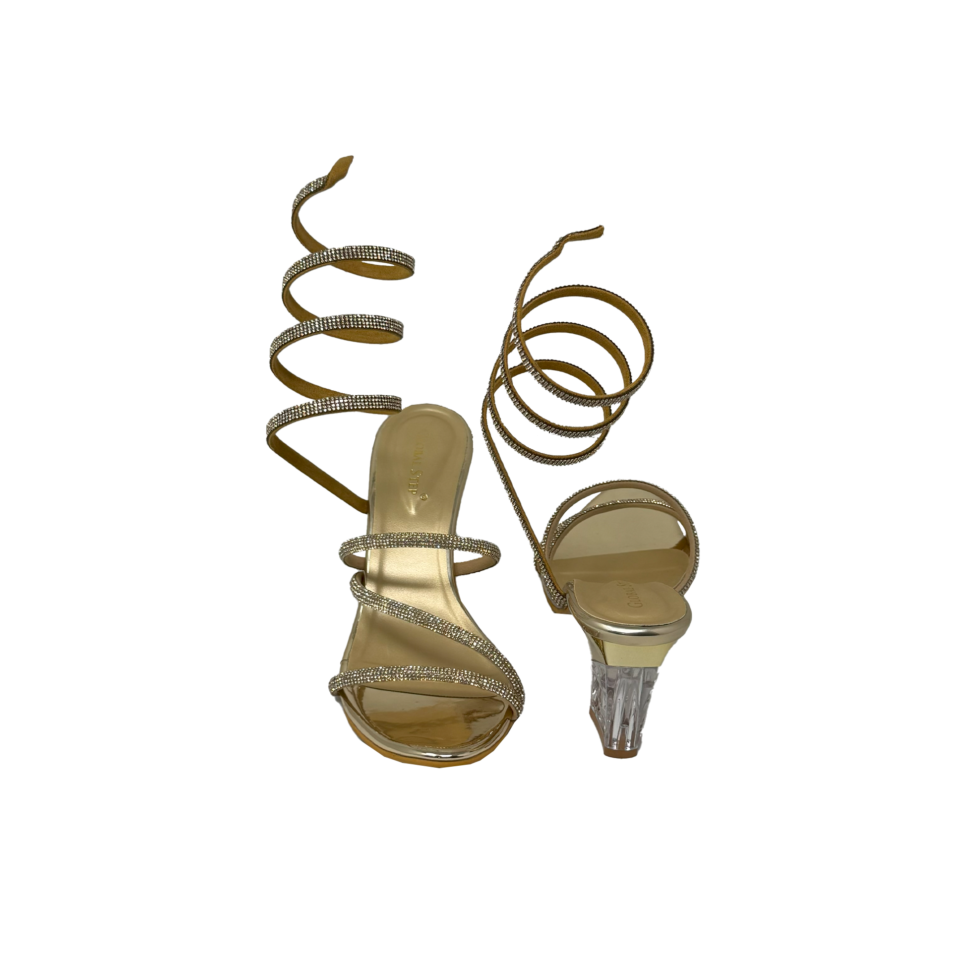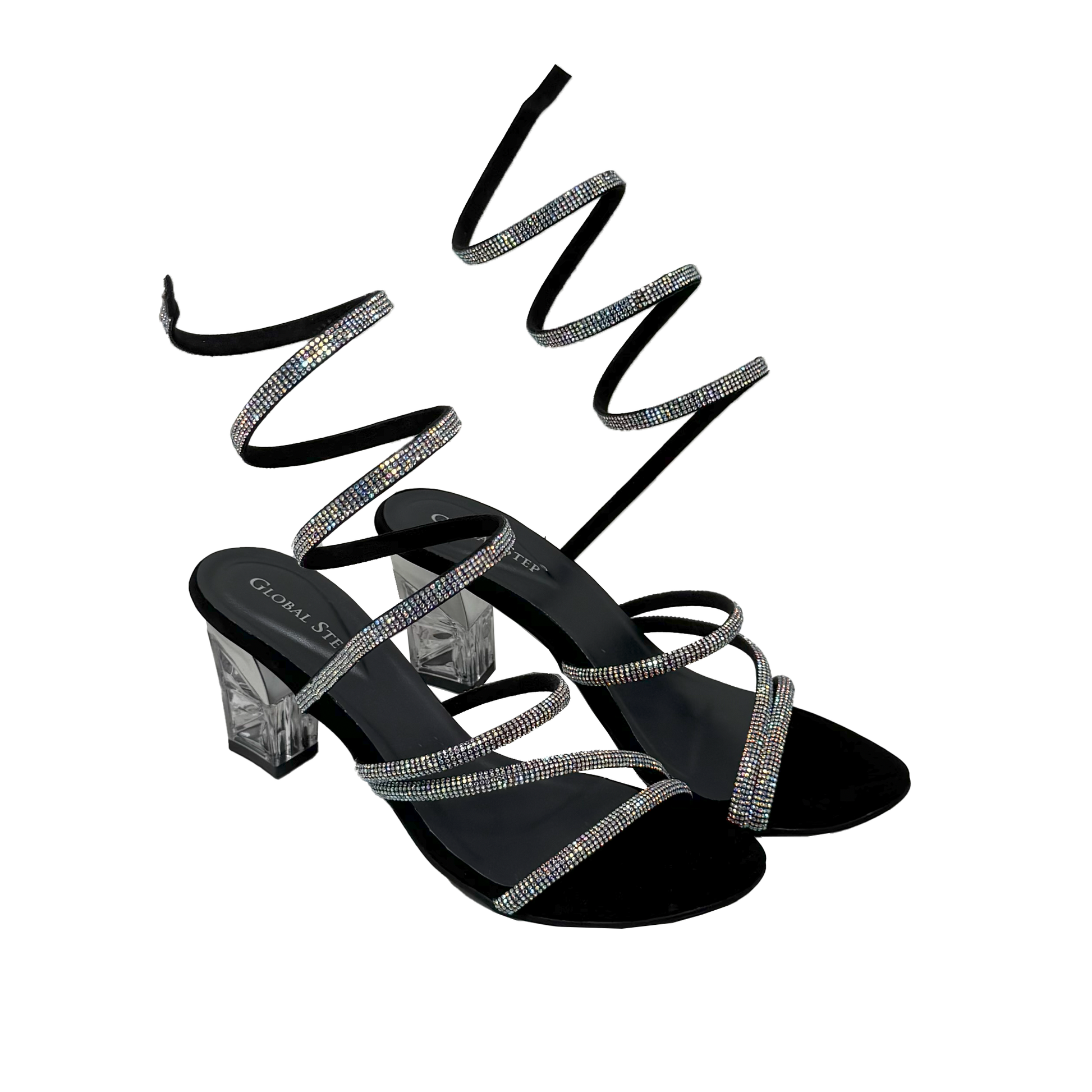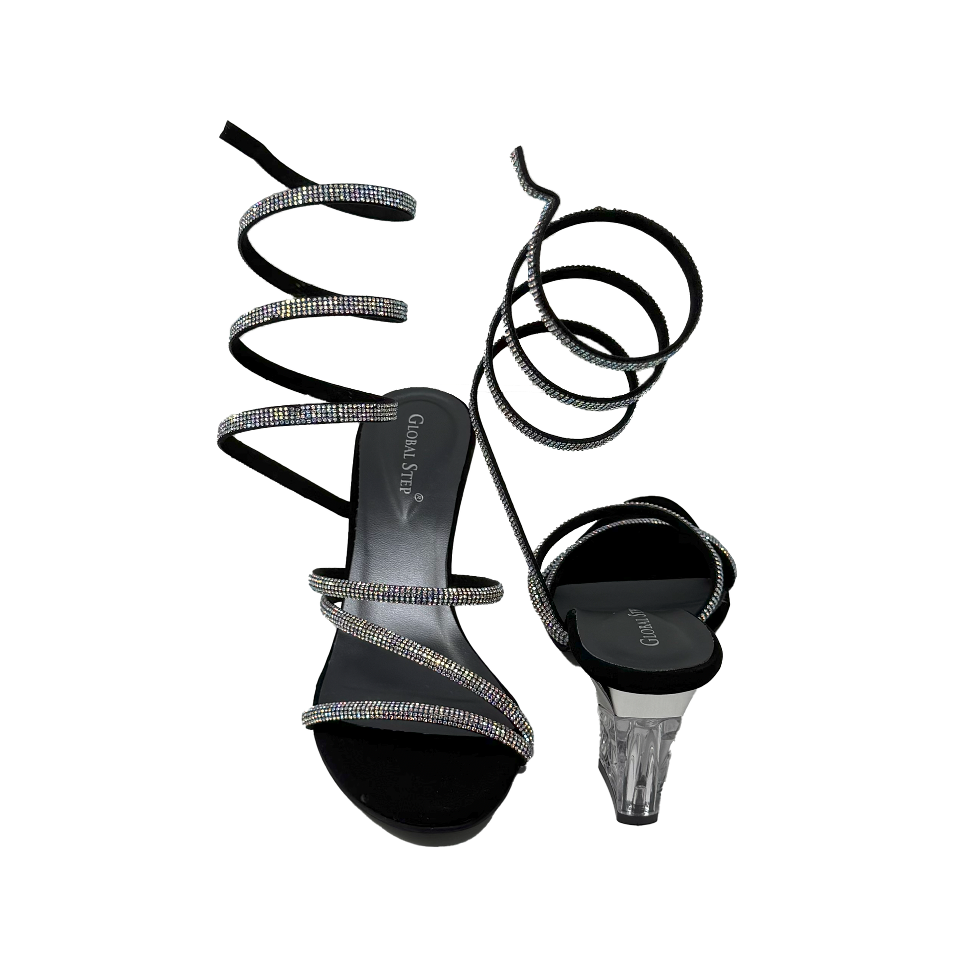 ✨ Spiral rhinestone straps – wrap elegantly around the leg for a glamorous effect